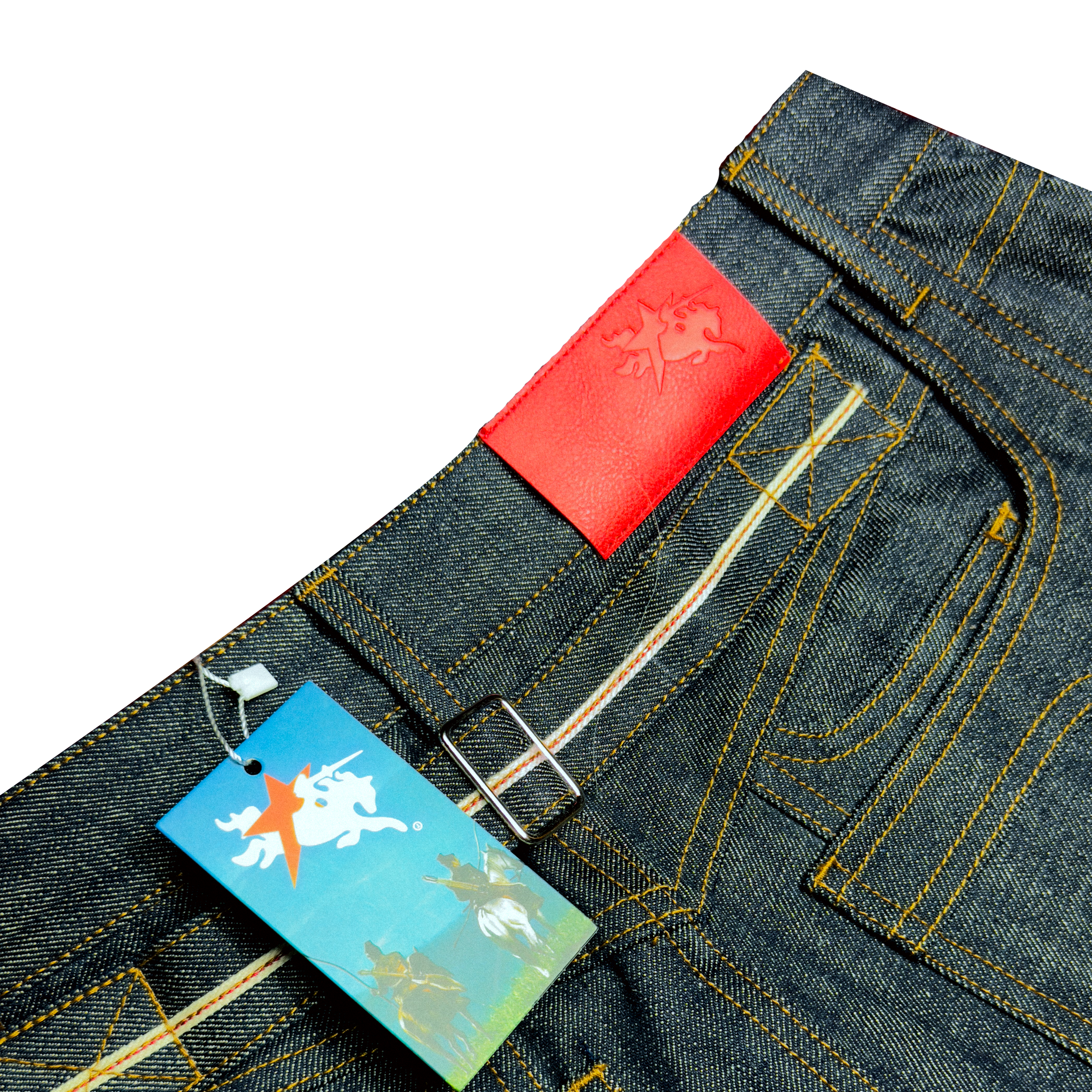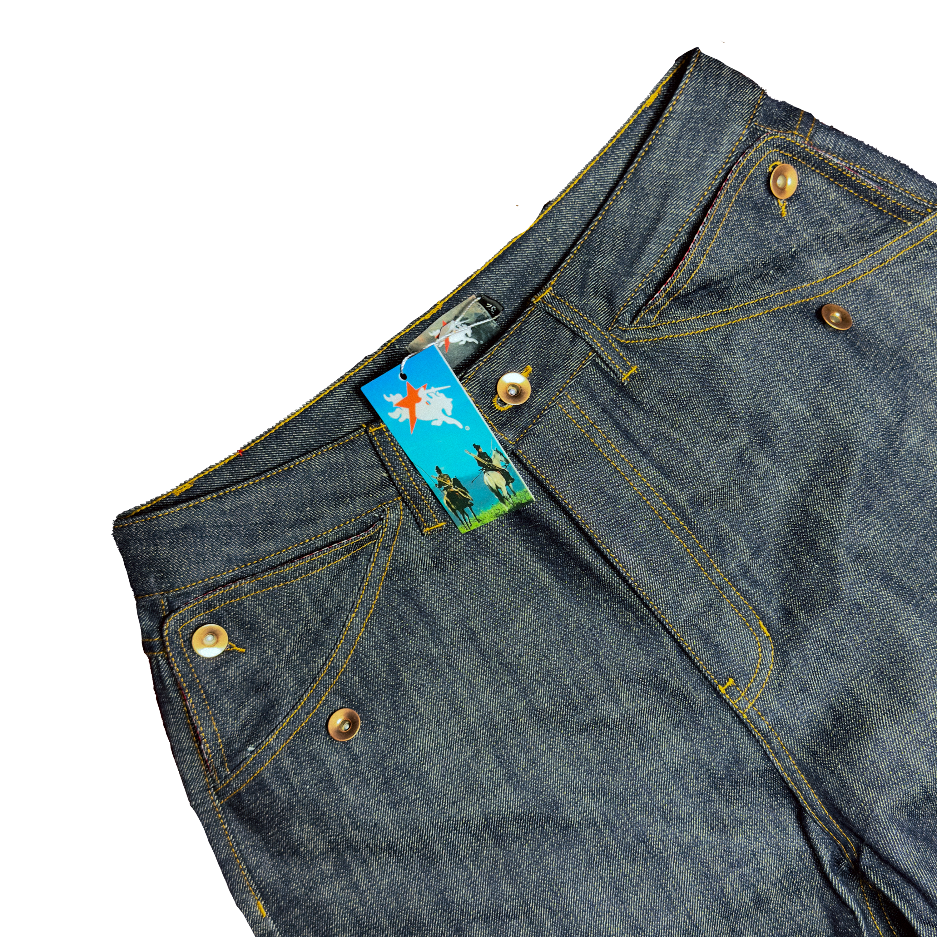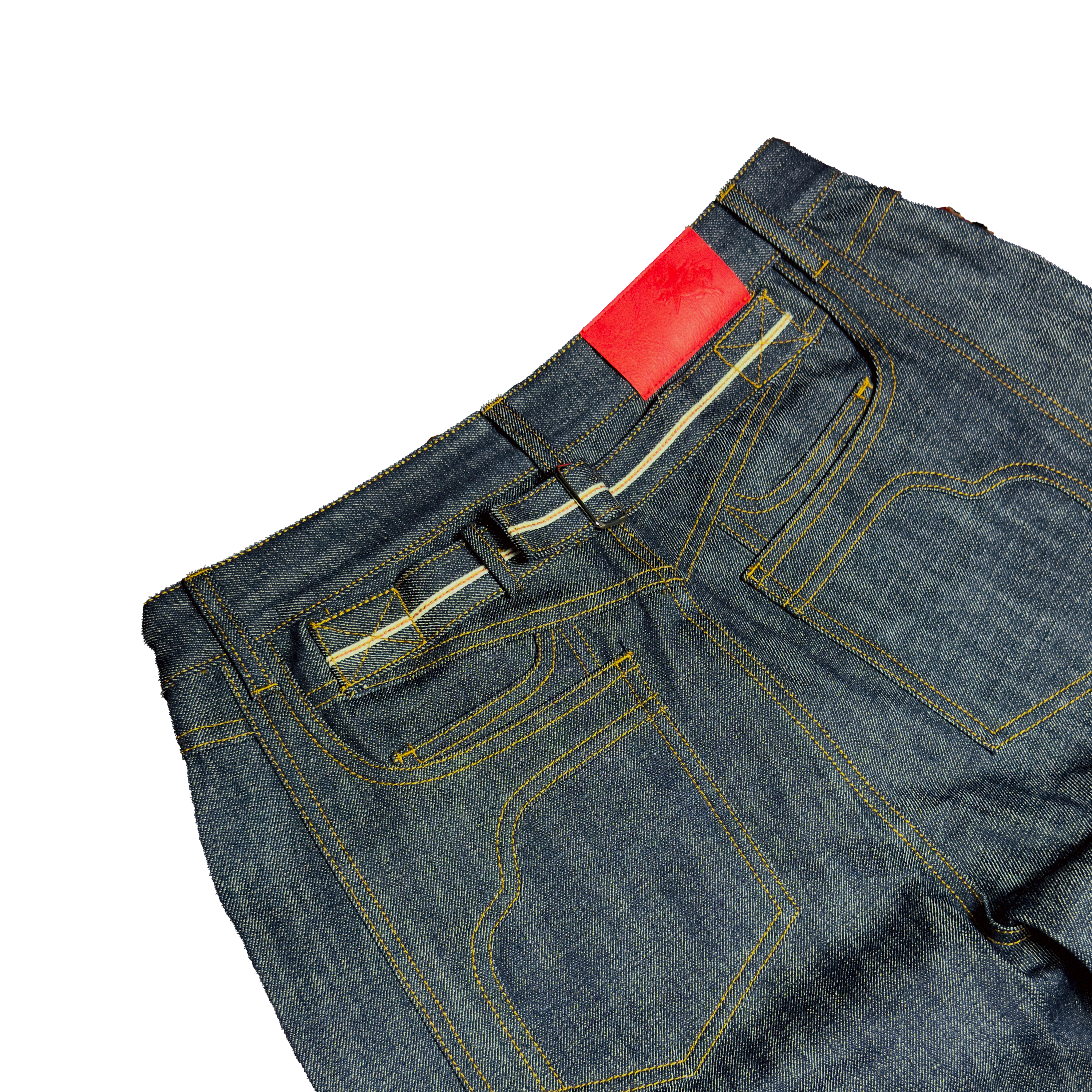 - Raw Indigo Dyed 14 oz Japanese Selvedge Denim.